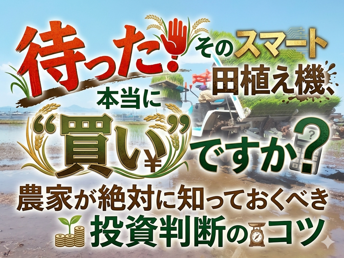 今回は、農家が設備投資、特にスマート田植え機のような高額な投資を検討する際に、絶対に押さえておくべき判断基準を、わかりやすく解説していきます。